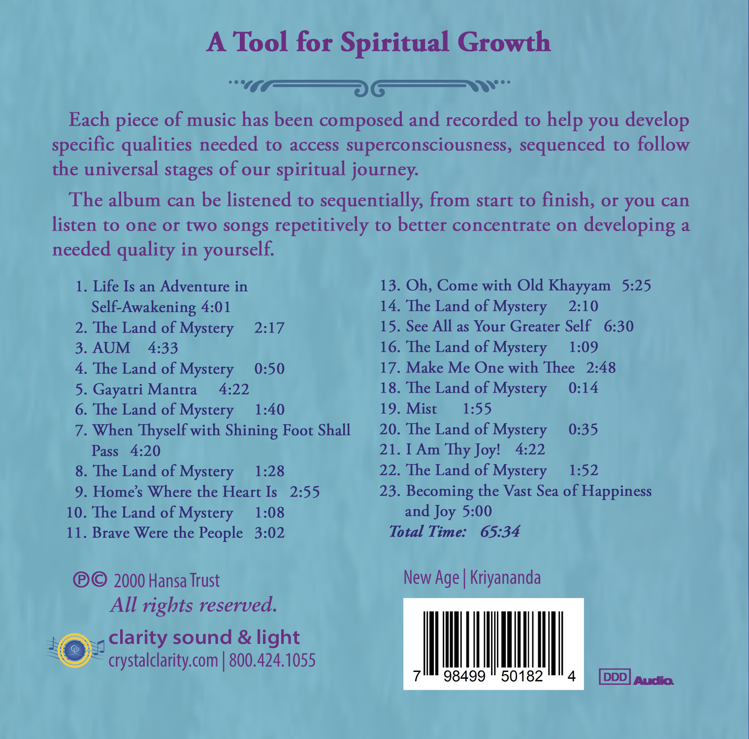 The music on this album is specifically designed to help us successfully and regularly access this state and maximize its beneficial effects. Through superconsciousness, we can feel inner peace, tap into our wellspring of creativity, unlock intuitive guidance, and hear the silent voice of our souls.